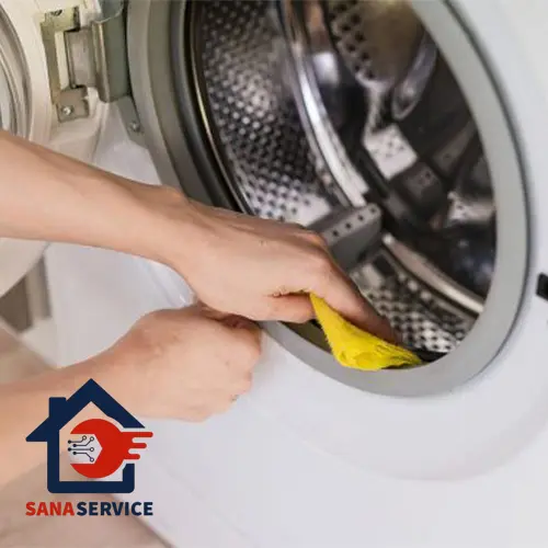 پس از اتمام فرآیند چرخه شست و شو درب دستگاه را باز کرده و سپس با استفاده از اسفنجی نرم، تمامی بخش های درام ماشین لباسشویی را تمیز کنید و در نهایت با استفاده از آب گرم درام ماشین لباسشویی را آبگیری کنید.